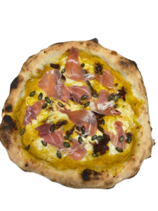 San Marzano / Ser kozi / Mozzarella / Gorgonzola / Cebula / Szczypiorek / Prosciutto crudo