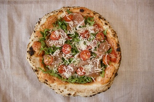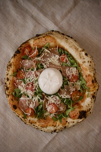 San marzano / Mozzarella / Burrata / Crudo / Rukola / Pomidorki Cherry / Grano Padano