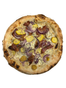 San Marzano / Ser kozi / Mozzarella / Gorgonzola / Cebula / Szczypiorek / Prosciutto crudo