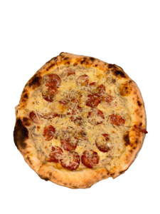 San marzano / Mozarella / Salami piccante / Cebula / Jalapeno / EVO
