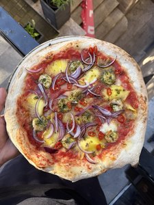 San Marzano / Mozzarella / Salami Picante / Gorgonzola / Cebula