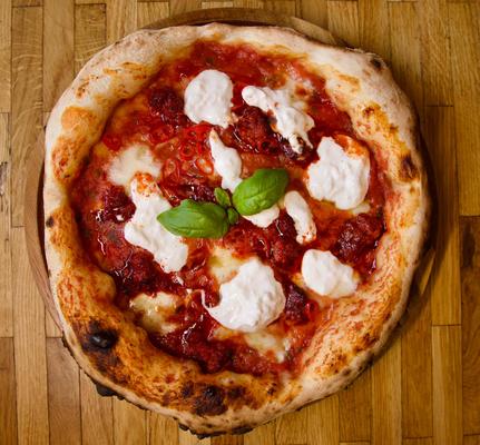 San Marzano, Mozzarella, Straciatella, 'Nduja, Chilli, Miód, Bazylia